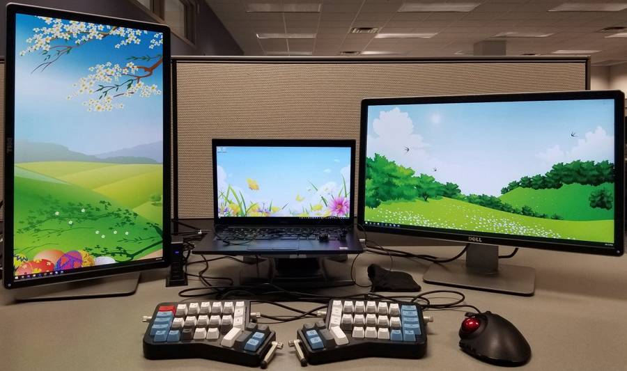 As I spend a fair amount of time on the road, my work laptop is a smaller (company issued) Dell Latitude 7480 with enough RAM (16GiB) to operate a few virtual machines that contain some auditing and security tools. I carry an ASUS 15.6" USB-powered monitor for some extra screen real estate for those nights in a hotel. When in the office I enjoy having multiple monitors to help me process data, drawings, documents, and notes while creating reports and presentations.