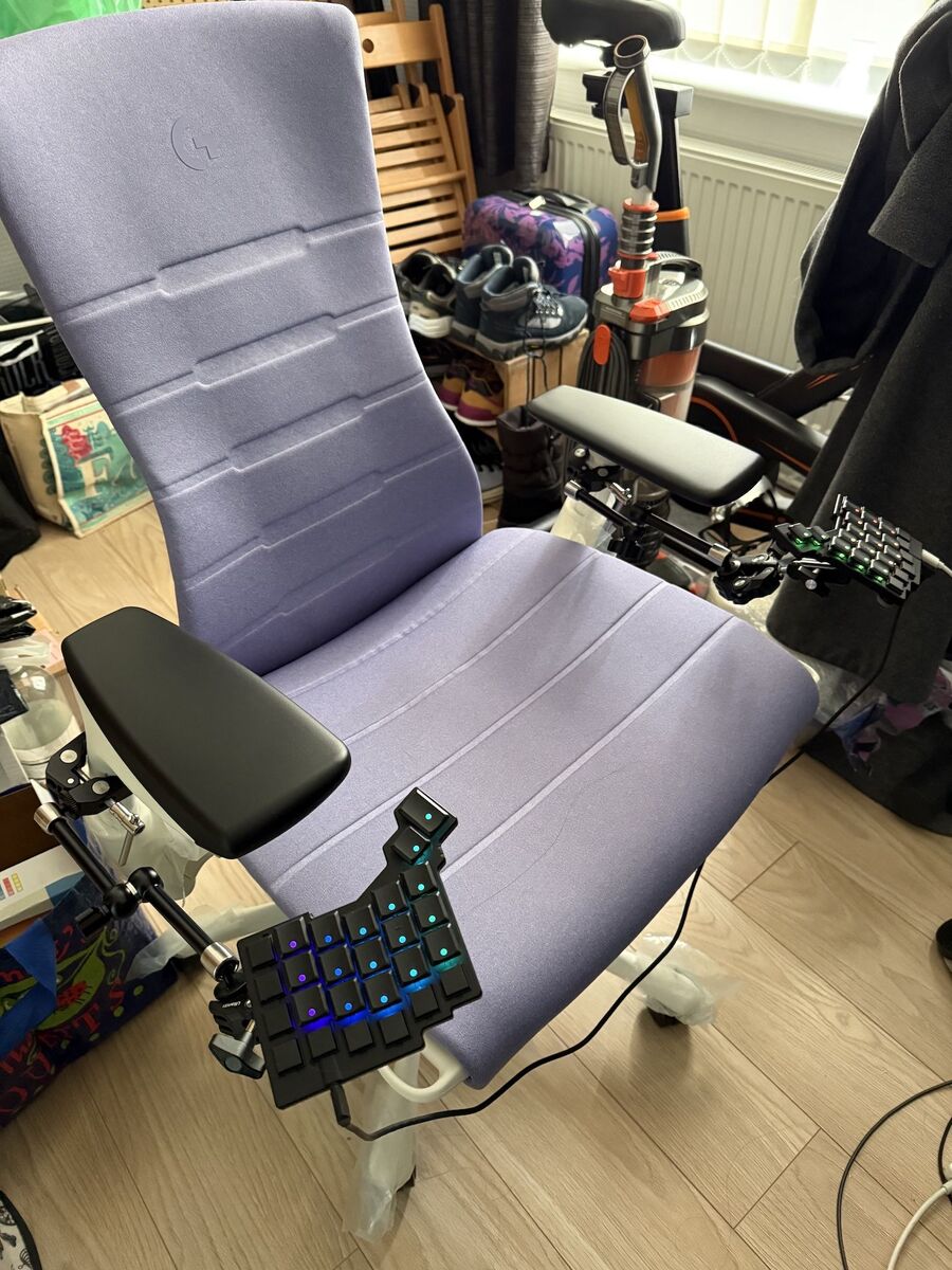 I also experimented with clamping the keyboards on my armrest, but found my shoulders and arms feeling stiff after a long day’s work. Plus using it on my desk now means easier access to my trackpad, which proves invaluable, especially on a 57" monitor!