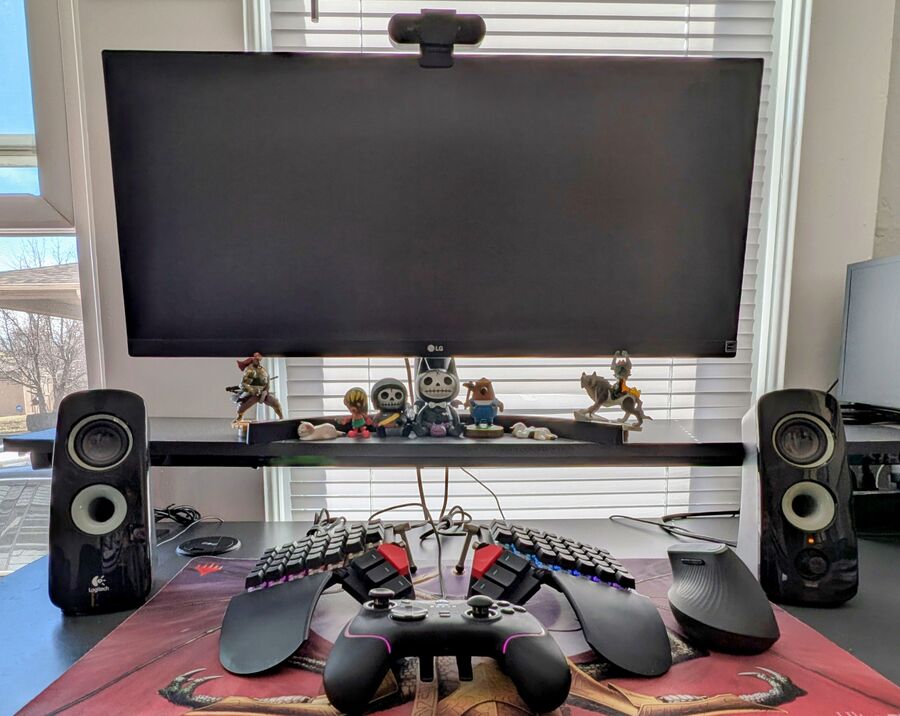 Besides parts, I have the following peripherals and accessories: LG 29WL500-B 29.0" 2560 x 1080 75 Hz Monitor, Logitech MX Vertical wireless optical mouse, Logitech Z323 30 W 2.1-channel speakers, Logitech BRIO STREAM webcam, EPOS | Sennheiser GSP 601 gaming headset, Razer Wolverine V2 Chroma gamepad—and, of course, my ZSA Moonlander keyboard!