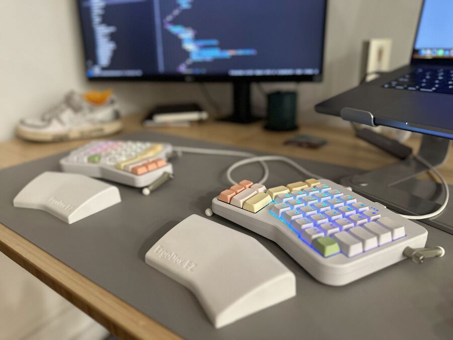 Prior to COVID, I had invested next to nothing in my home setup because I’d always go to an office or café. Luckily, I had a work-from-home budget and a manager who recommended I go for an ErgoDox. And after a month of getting used to the split setup, I never looked back! I love my shortcuts and haven’t experienced any wrist pain due to coding since. I definitely type faster on my ErgoDox EZ than on my laptop at this point, too. In 2023, I switched to a hybrid work environment, but I feel spoiled in that I actually have another EZ at the office!