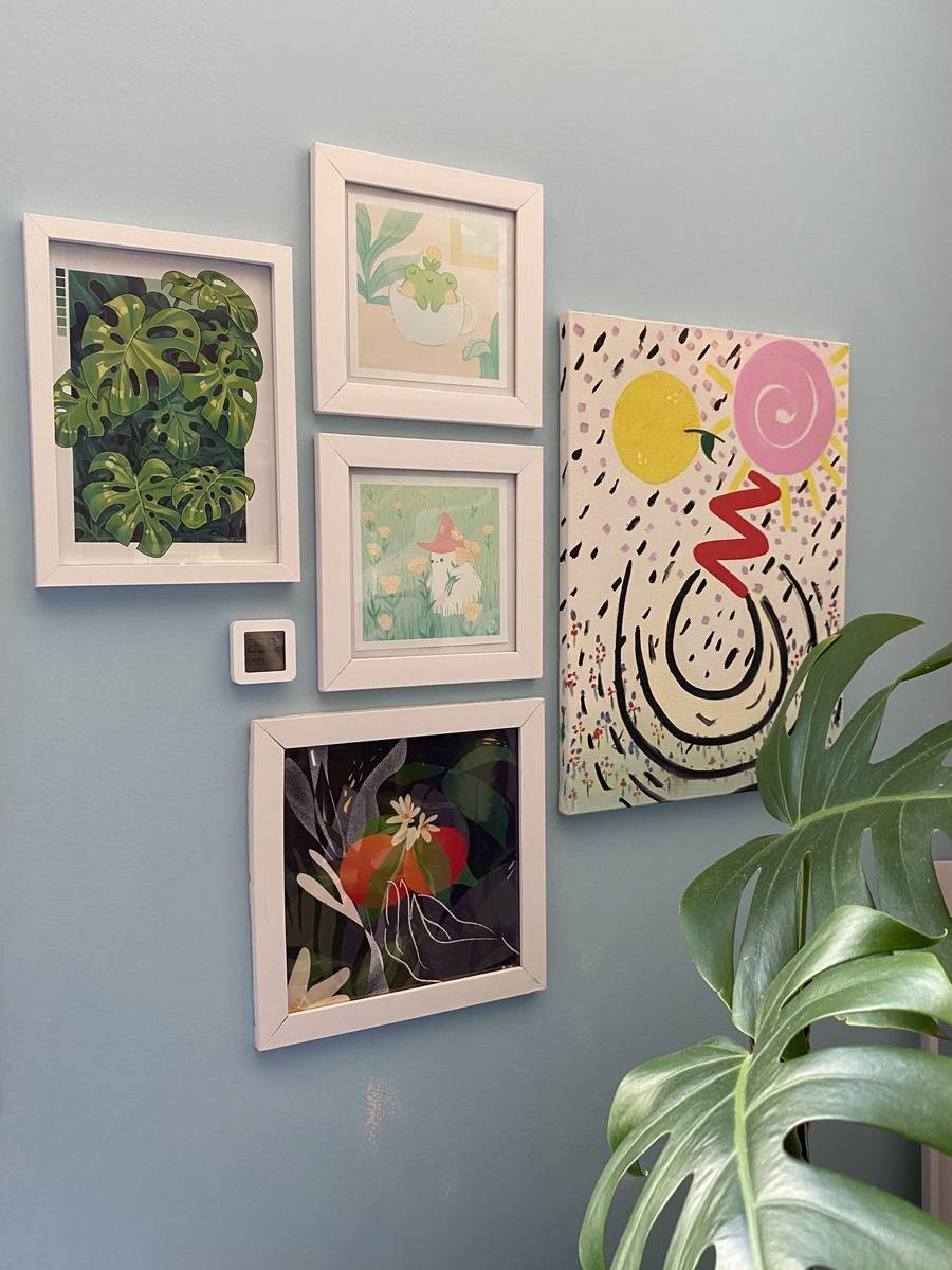 I have a wall full of art by foreign and Brazilian artists (Arcasian, Doki Rosi, nani, and an original painting by a friend of mine, Lily). On my desk there’s a frame with a drawing of a frog by Maria Carvalho with a play on words from an old children’s song (“O sapo não lava o pé”) as a reminder to not be so hard on myself: “It’s okay to have days where you can’t even wash your feet.”