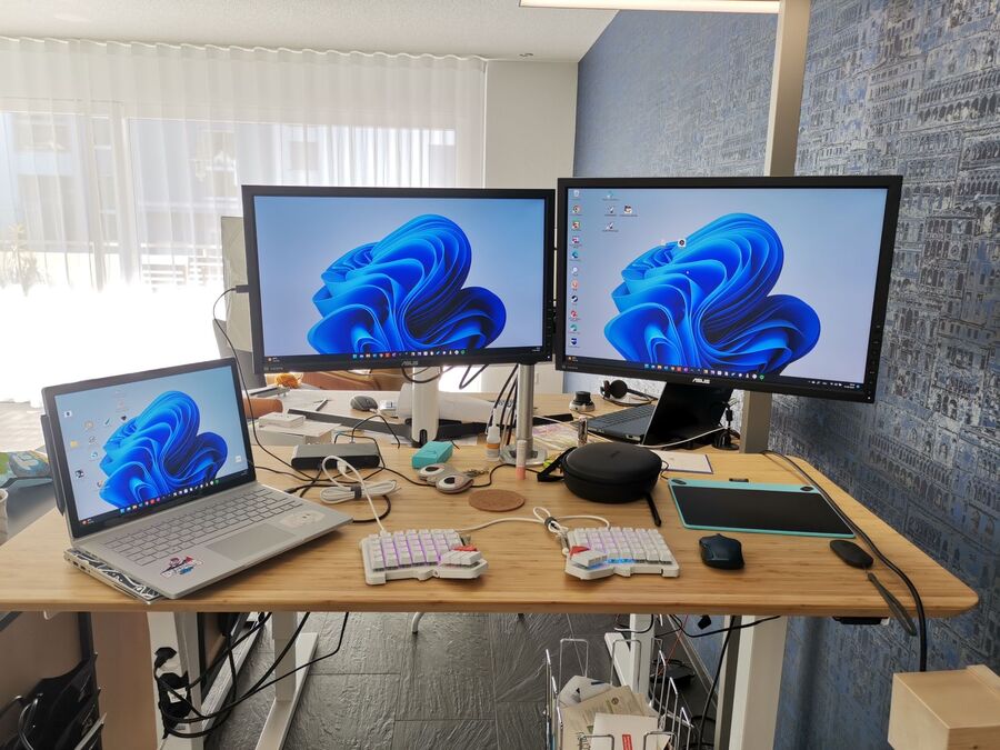 I work on a laptop connected to a docking station with two screens. For the ergonomic side, I also like to walk during my working hours. I wrote an article on the subject with one of my colleagues from the Editorial team. In part 2, I also talk about the Moonlander 😊:. In the pictures, you have a little overview of my setting. For typing, I use the Moonlander and am really glad I invested in this keyboard.
