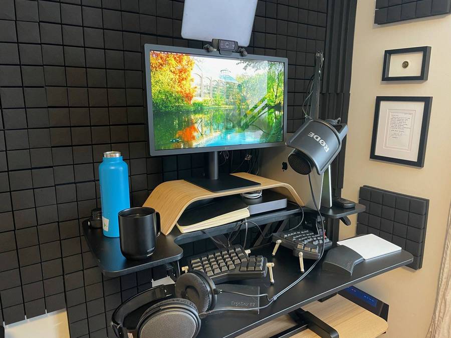 Having recently moved home to Canada, my home office setup is still New York apartment-sized. In a regular-sized house, my office equipment all feels tiny. It’s a work in progress. I use a sit-stand converter, but that doesn’t even fit on my small desk. I’ve just ordered a new Jarvis sit-stand desk, and can’t wait for it to arrive. Once it does, I can start improving everything else.