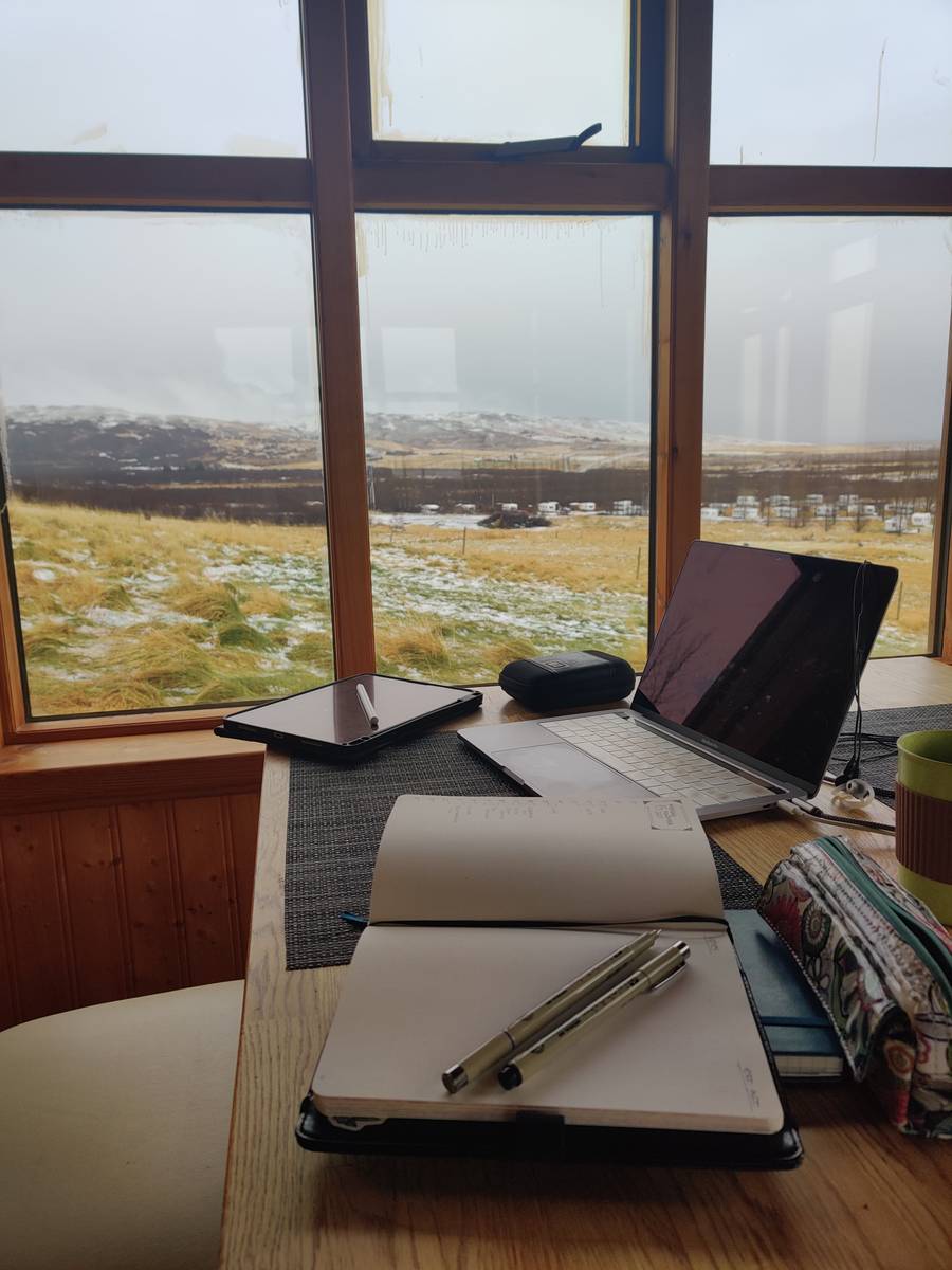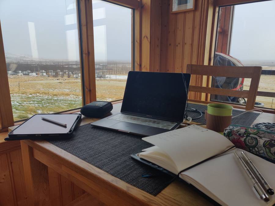 I'm currently on the road, working for a month from a cabin in southern Iceland, so I'll describe my travel setup instead of my home office. This trip has been an experiment in doing true "remote work," and my setup is still a work in progress.