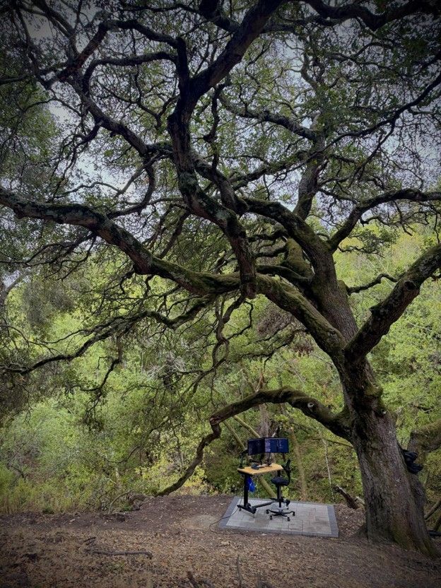 My secondary workstation is outside in the summer beneath an oak tree. It’s an M2 Mac mini with 16 GB RAM and a 1 TB SSD.