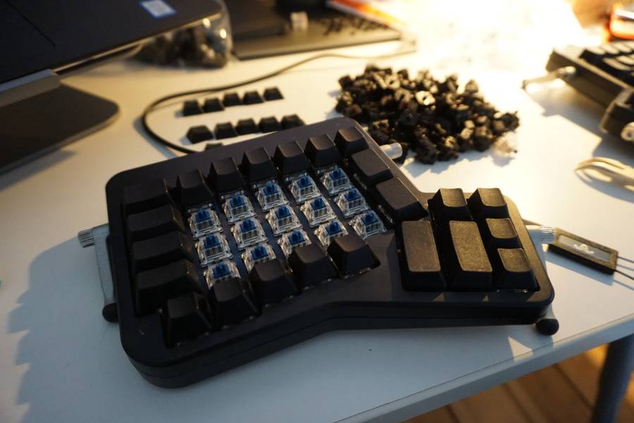 I almost forgot one very important piece of hardware: my Sony WH-1000XM2 headphones. I use and enjoy those a lot :). Oh, and I also got new switches, so now my ErgoDox EZ is sporting awesome tactility with the Zilent 67g switches.