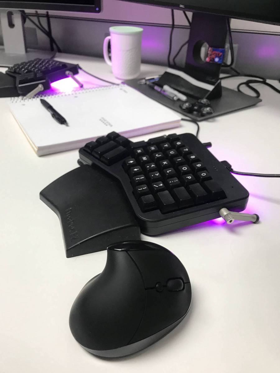 - Custom lap desk for a Plank EZ and Razer Naga Trinity setup.
