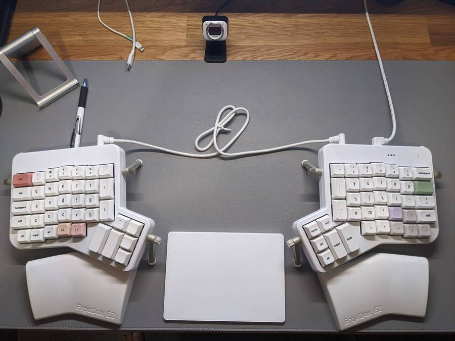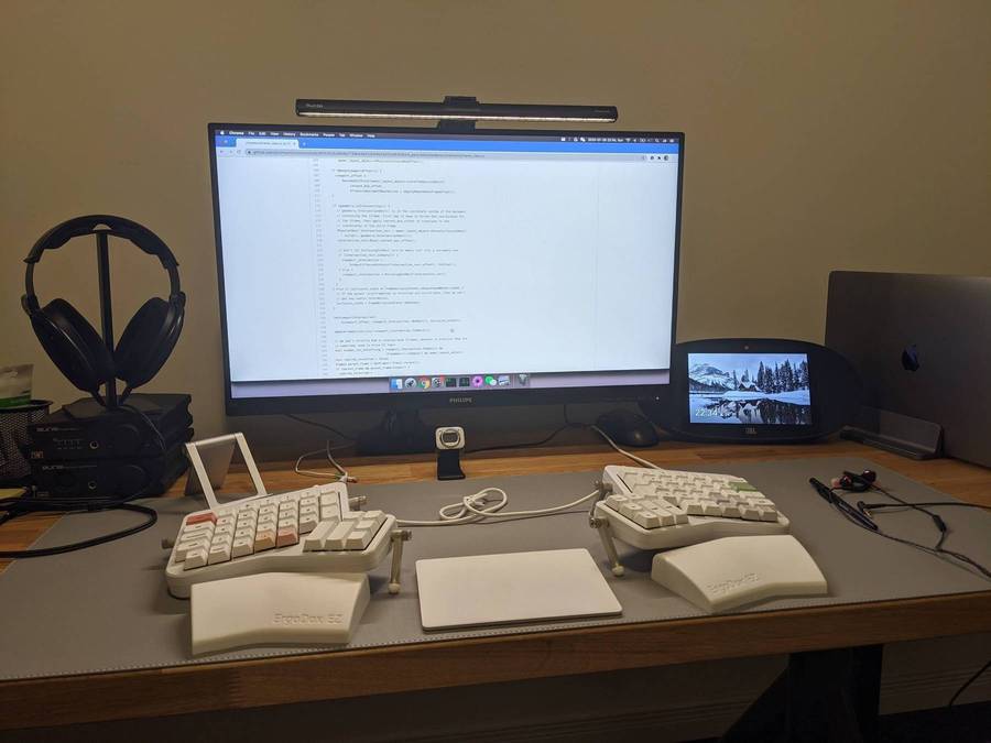 - Keyboard: ErgoDox EZ with tilt kit, wing rest, and Shine