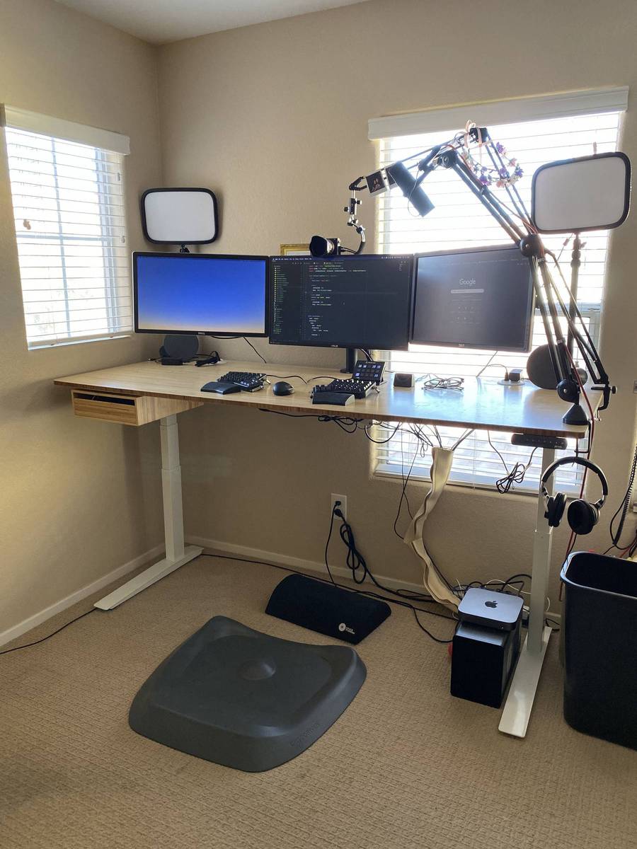 For seating, I've got a Steelcase Gesture chair that has been a great friend. When switching to standing mode, I use an Ergodriven Topo as a standing mat that helps a ton.