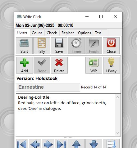 I think one key (Editor: That dreadful pun again)(Copy editor: Are we really going to let him put words in your mouth?)(Editor: They’re good words, so sure) to switch (Editor: Oh, honestly)(Copy editor: …?)(Editor: One more, and I’m cutting him off) things up is deciding at what level to customise. As I’ve said, I use em-dash a lot, so I’ve a dedicated key for it. One of my heroines is called Earnestine, so in Word “e#” is autoreplaced to “Earnestine.” However, my indie collective “New Street Authors” is something I write in emails as well, so that’s Menu, “n” via AutoHotKey.