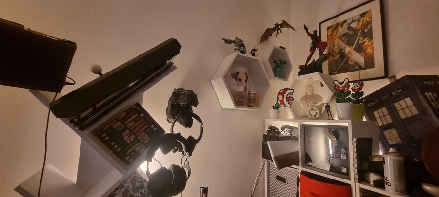 I've also got four Govee light bars, so I can easily change the light settings depending on my mood. They are behind the monitors, and it's great to adjust the brightness in the evening.