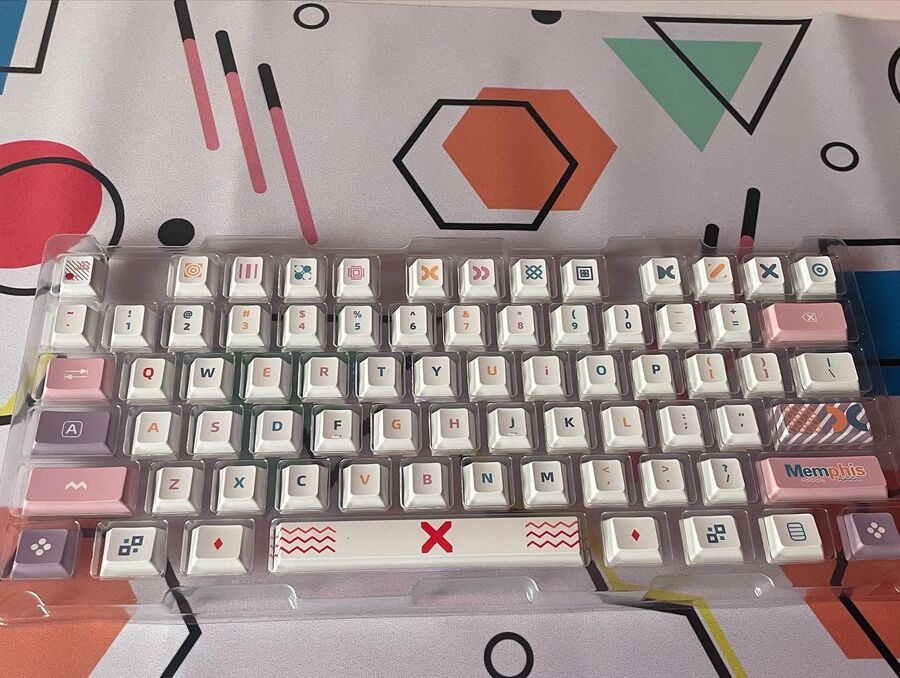 Also I currently use a cheap keycap set I got from Banggood. I also use a Memphis-inspired keycaps set. You can find the knockoff on AliExpress, or if you are in the mood to splurge, you can get the original set on Etsy.