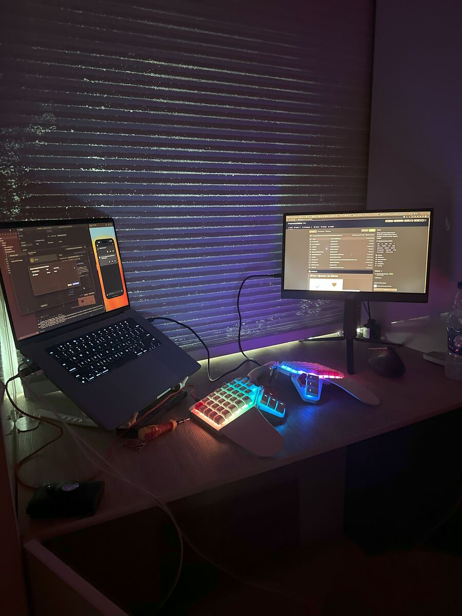 The hardware that I use? Oh, I use the particle divider at Cern 😅. My daily driver, if you will. Occasionally, though, I code with Xcode on a 14-inch MacBook Pro with 512GB of storage and a very feeble 16GB of RAM. I know, I know, 16GB is ridiculous.