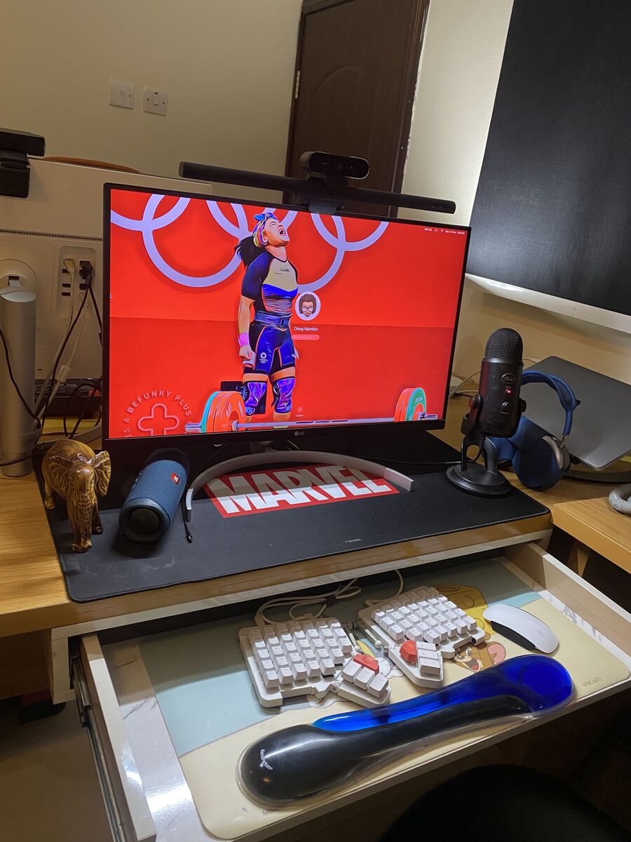 My name is Douglas Mamilor, and I am an engineer at InVisionApp. I live in Lagos, Nigeria. Outside of work, I spend a lot of time mainly on three wildly different activities: studying Maths, road cycling, and practicing Olympic weightlifting. I can also be found constantly searching (in vain) for a replacement for my favourite cartoon, “The Amazing World of Gumball.” I must admit with some embarrassment that until a few weeks before I bought my Moonlander in August, I did not really know that mechanical keyboards were a thing. A lot (maybe too much :-)) has changed since then. Lol.