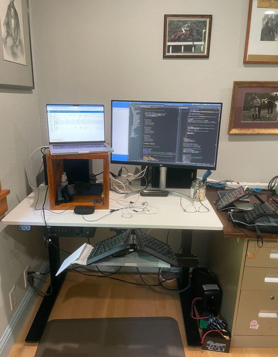 I really love the vertical monitor at my work, it’s so nice for editing code. I think my dream setup would have a 4K or 5K vertical monitor for code editing, and another one horizontal for testing, debugging, email, etc. I think you can never have too many pixels at your beck and call.
