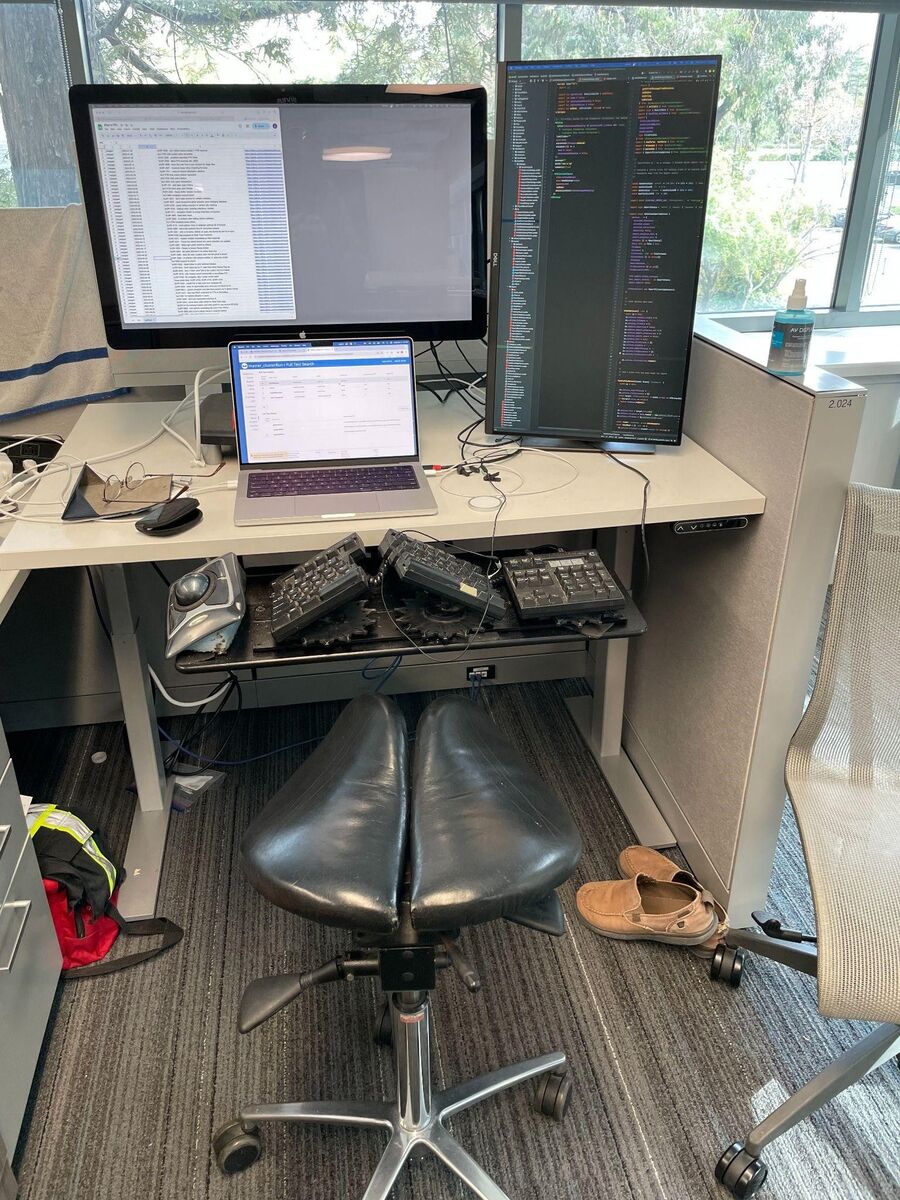 At work I’m a front-end generalist. Over the years my work has included UI and interaction design, implementation, and user studies, including some really fun work doing ethnographic field studies of IT workers. There’s nothing like following people around for days or weeks to understand their tools, work practices, and what makes their jobs easy or hard. Lately I’ve been spending lots of time creating database user interfaces in TypeScript and Svelte, in order to make a complex database system comprehensible and manageable. The title on my business card includes the phrase “User Advocate,” since I aim to bring a better understanding of the user into front-end engineering. Without that understanding, it’s really hard to create good tools for users. The majority of my work time is at the computer, hence my interest in keyboards and other input devices.