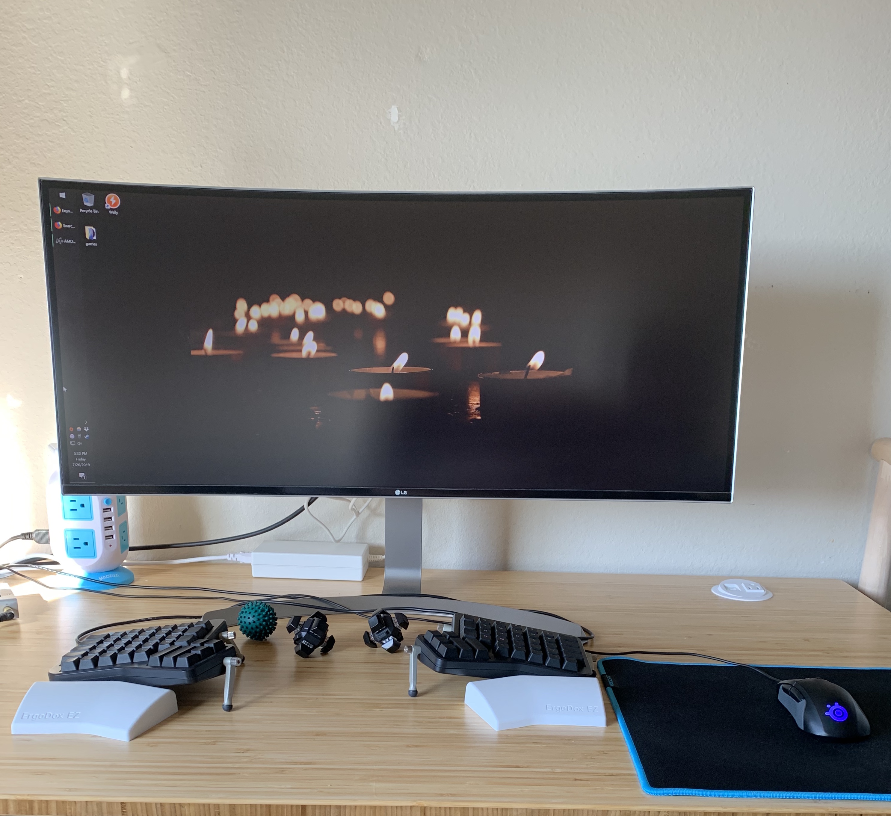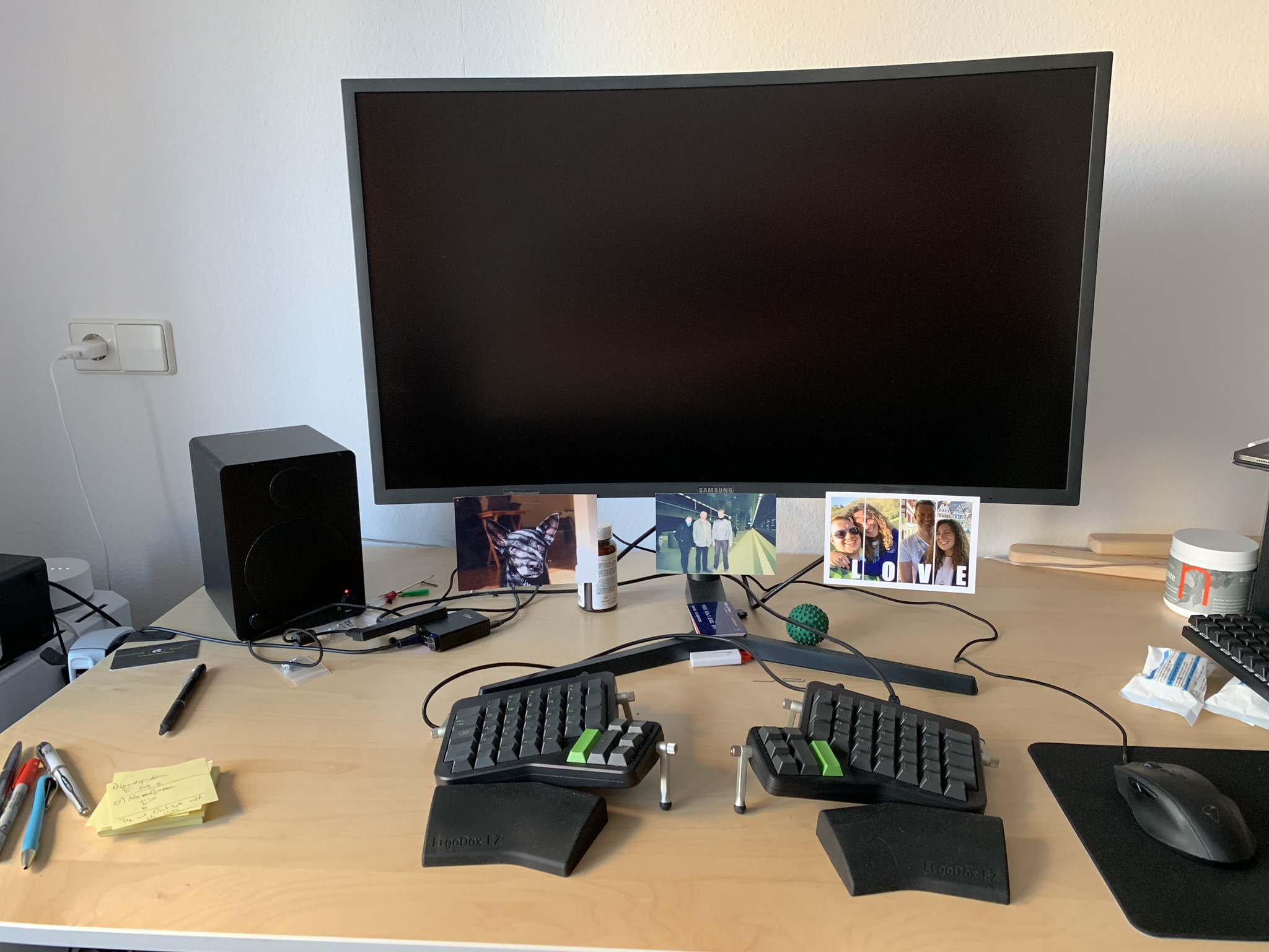 Besides the ErgoDox EZ keyboards, I have many other keyboards: Topre keyboards, multiple TKL keyboards, a Keyboardio Model 01, some Kinesis keyboards, and some flat keyboards like the Sharkoon PureWriter TKL RGB. The Model 01's wood is absolutely gorgeous, but typing on an ErgoDox EZ just feels better.
