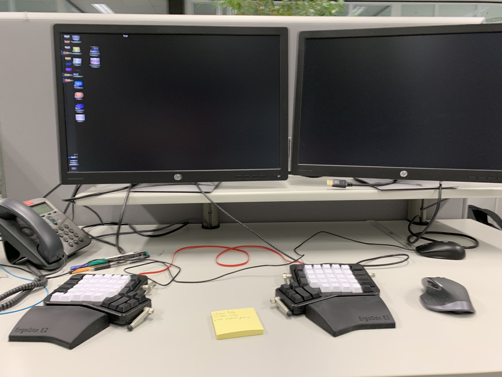 - ErgoDox #1 is in my office in San Diego (regular white, Kailh Thick Gold).