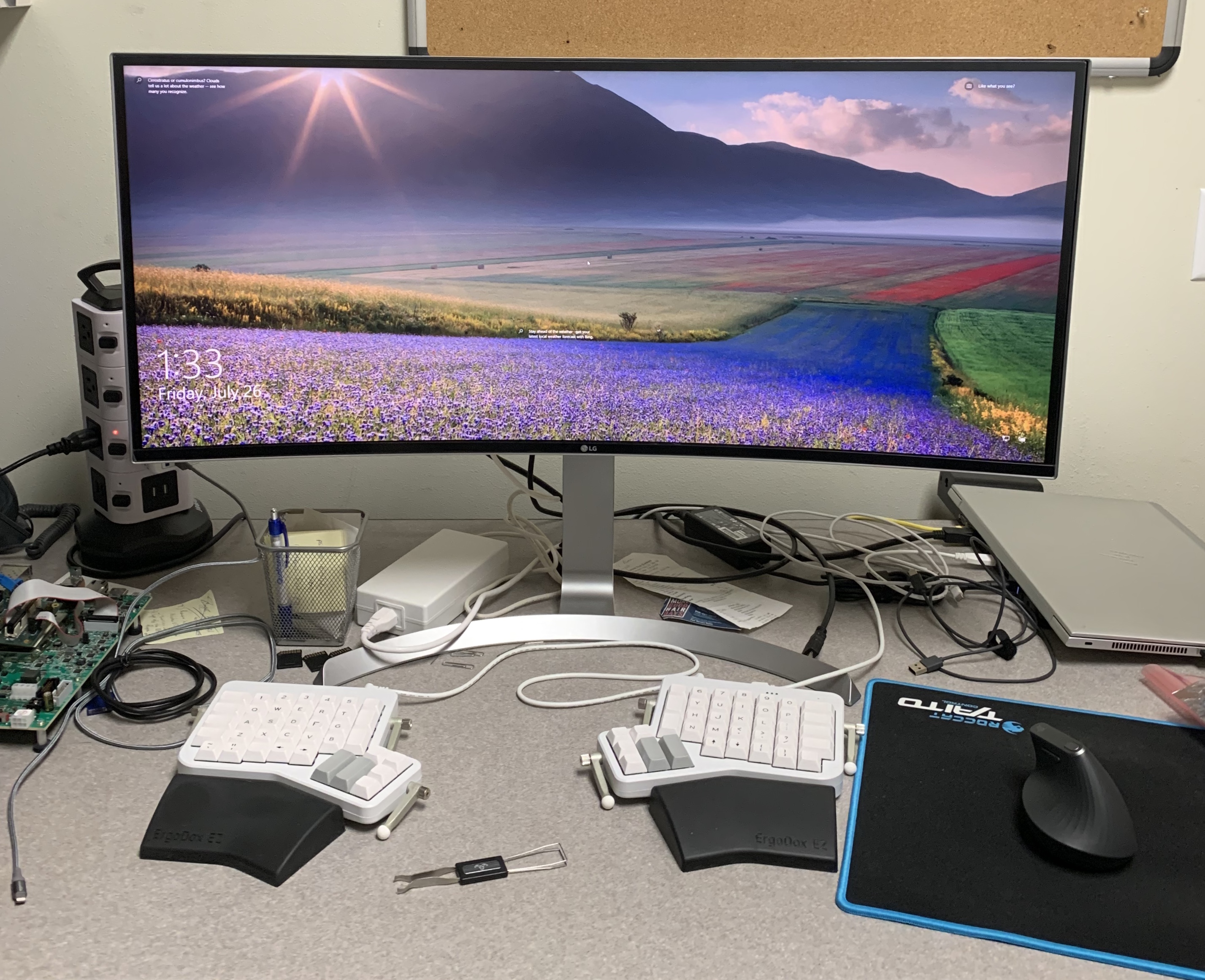 On any given day, I switch between my personal MacBook Pro (2012), an iPad Pro, an iPhone XS, HP and Lenovo laptops, and HP Z4G4 workstations with Red Hat Enterprise Linux. Two monitors are a must. I use various standing desks with an Ergodriven Topo Mat for more comfort.