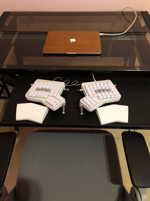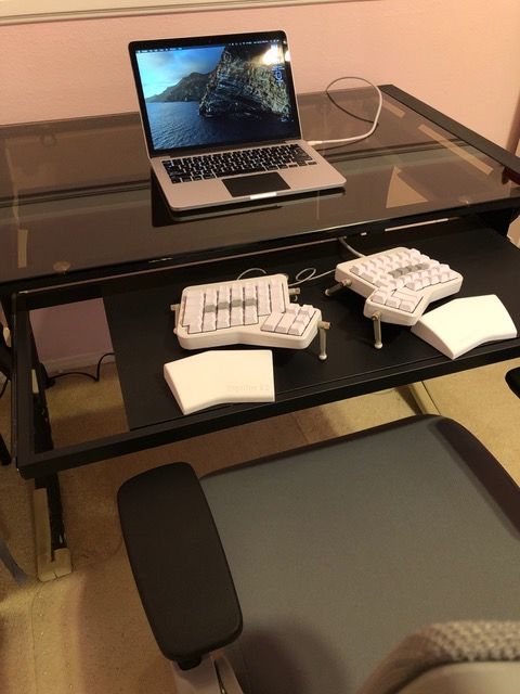 At home, I use a MacBook Pro Retina 13" mid-2014, which in my opinion, was one of the best models of recent years. Unlike the newer models, it still has a MagSafe power connection, and the Apple logo lights up. Its performance is still as fast as the day I bought it! I feel that Android offers far more versatility and features than iPhone, and I owned a Pixel 2 XL for a while. I absolutely loved it, but I dug deep and discovered the degree to which Android does not respect user privacy. I felt the services provided did not balance out the privacy they asked the user to sacrifice. So I hesitantly reverted to using an iPhone 8 Plus. I am not interested in the new iPhones because I do not trust Face ID, and I abhor that unsightly notch; I intend to hold onto this phone for as long as I can. I have an Ergonomic Touchpad by ETPA but haven't figured out the best way to incorporate it into my workspace just yet. Once I do, I look forward to using scroll a lot less on my mouse, thereby preserving my wrist strength even more. In my home office, I have a Clatina Ergonomic High Swivel Executive Chair with adjustable-height 3D arm rest, lumbar support, mesh back, and headrest.