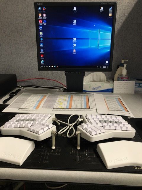 I don't use any specialized software. Most of my time is spent in Microsoft Outlook, addressing an avalanche of emails. I also use Excel, Word, PowerPoint, Acrobat Reader DC. Due to COVID, I have been using Webex and Microsoft Teams a lot more. With the customized layout on my ErgoDox, I am able to enjoy a much more efficient workflow. It is so nice to be able to use single keystrokes to zoom in and out, rotate images and documents, make annoying menus disappear, and use Auto Shift to just keep typing without too many finger acrobatics.
