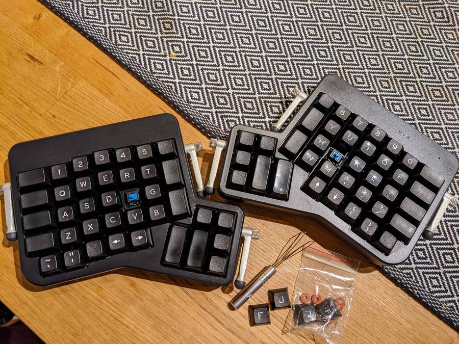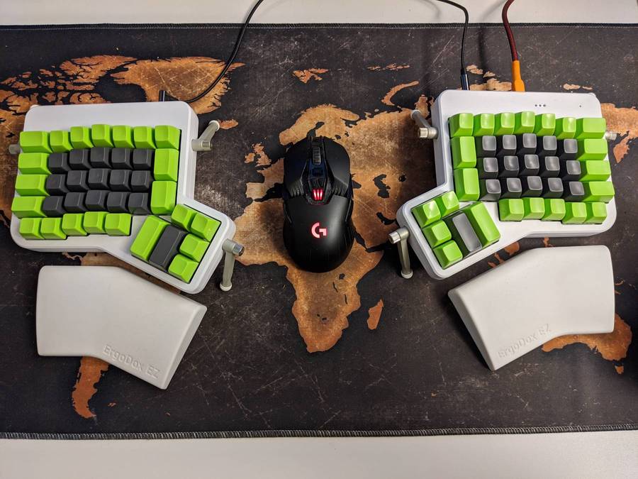 And, of course, I own two ErgoDox EZ keyboards, Cherry MX Blue and Red switches for home and work usage respectively.