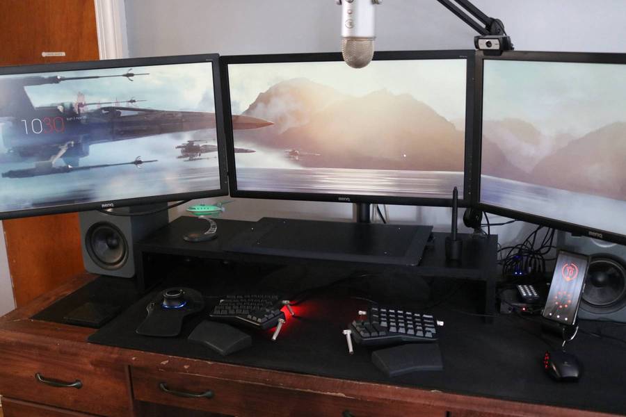 As far as a keyboard, the ErgoDox EZ, of course, but with a couple of customizations. I am in the process of designing a CNC-milled housing oriented to the angle I like with a machined recess for the wrist rest. I am hoping to have time to print up some custom keycaps on my Form 2, as I love the DCS keycaps, but wouldn't mind some textured WASD keys with the same profile. Selection is very limited in that keycap family.