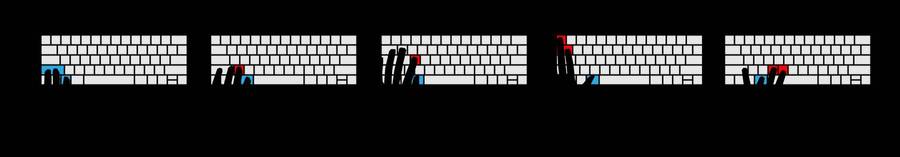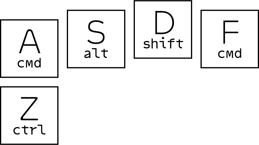 Before I got my Ergo, it always annoyed me that, whenever I was using graphics software, my hand would come to rest at the very edge of my keyboard, with my index finger on Alt and my middle finger on Shift. This was simply my most natural position, since I use the Alt key to adjust my view, and the Shift key to build selections and constrain my moves. With this style of board, I have to shift my hand into new contortions to reach basic application functions like ‘undo’ or ‘paste.’ What a waste of time!