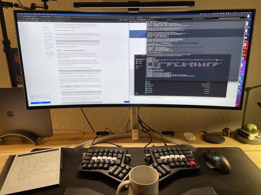 Since I'm currently in a home office, I'm very happy with my setup. I think I would decide against an ultra-wide monitor in the future and use two monitors + MacBook or three monitors. I am very happy with my MacBook.