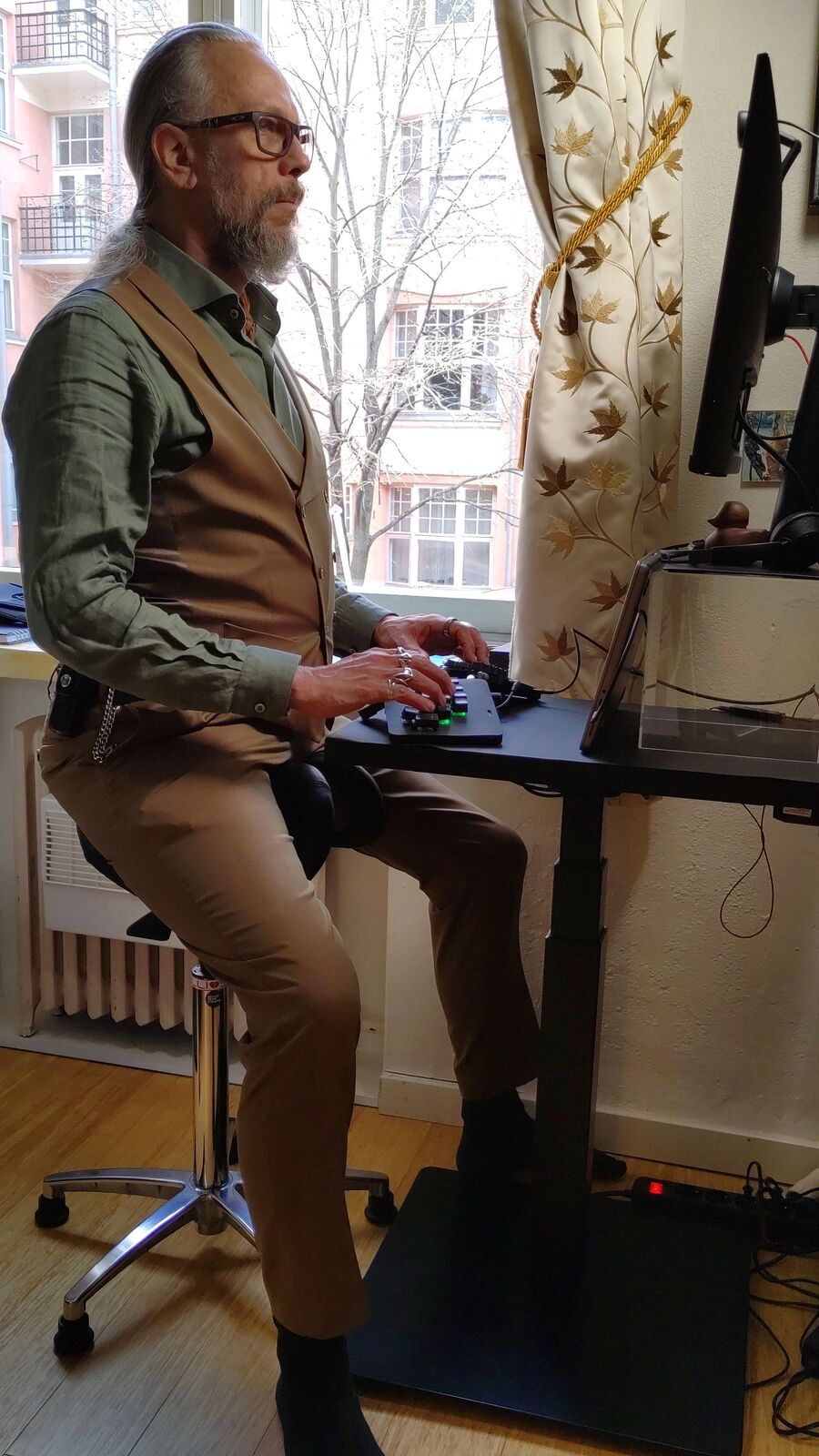 - a headset with a boom mic (Plantronics Blackwire 5220 at home, Beyerdynamic MMX 300 at the office)