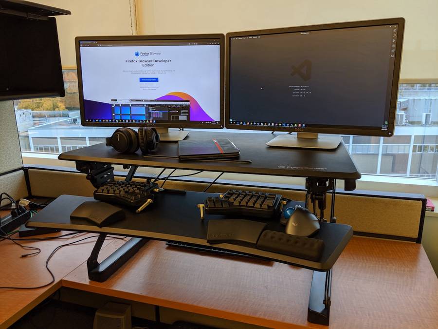 I also use a PrimeCables standing desk. This is my first height-adjustable standing desk, and I really love it. It can be installed on top of normal desks, and it is very easy to adjust its height. Also, the standing desk is spacious enough to place a sub monitor.