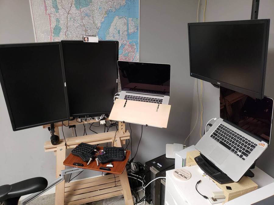 Besides more and bigger monitors for my office setup I would love some improvements to my travel setup. At least a second monitor for traveling would be nice. (I have been scouting out a few on Amazon.) I would love a version of the Ergodox that's a little more portable, or even a Bluetooth version. A thinner version that has the same physical layout and would accept the same firmware would be awesome. (This would not even need to be mechanical keys since I want convenience. I have pulled out my whole setup on a plane many times, and will keep doing it. At this point I am lost without all the macros, and forget about going back to QWERTY.)