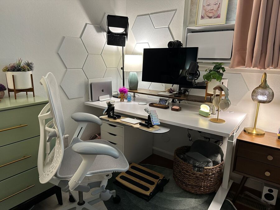 Iterating is fun for me, so I doubt I could have an "endgame" setup. But right now I'm playing with ideas to eliminate the keyboard tray on my desk to optimize the surprisingly complex spatial relationships between my camera, monitor, desk, chair, and background. I'm also dying to try the Vision Pro! Having a dedicated office would be lovely.