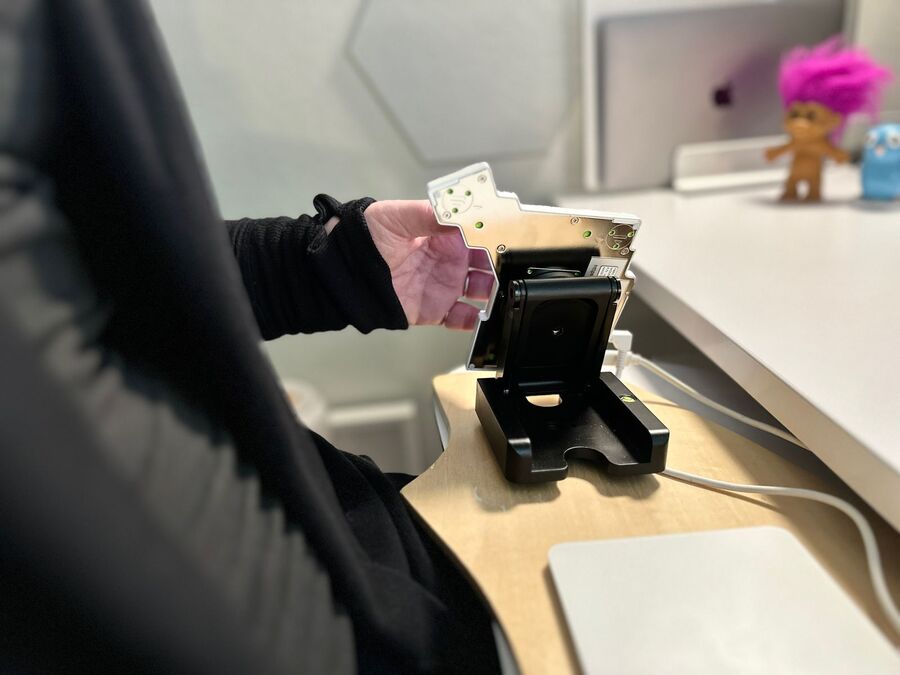 After trying several different tenting solutions, I've landed on using Z-shaped camera mounts, which I've attached to the lap desk with bar magnets. On each camera mount I've attached a MagSafe tripod mount, which is a perfect match for the Voyager's magnetic base! For the Moonlander I use MagSafe stickers on its base for a similar effect (not quite as good, though, since the magnetic surface is limited to the size of the sticker).