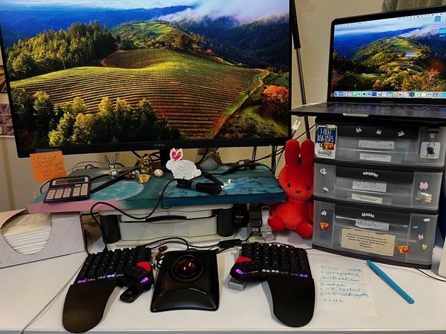 One part of my dream setup is not having to do much typing on my laptop keyboard, even when working from home or being a digital nomad. I love how portable the Moonlander is; I plan to take it with me to Mexico in a few weeks for a working vacation.