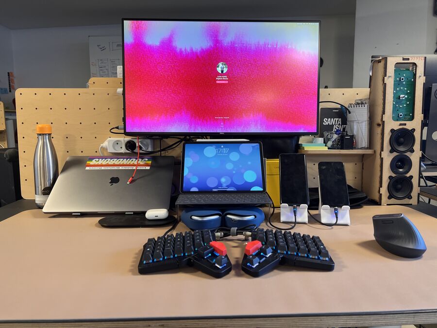 I'm such a fan of the Thunderbolt ecosystem. Everything is hubbed and has a one-cable setup. I have a few machines I switch between: a MacBook Pro 16" for work, a MacBook Pro 15" for music on the road, Mac Mini M1 for home studio, and a custom PC for gaming. Everything gets the one-Thunderbolt-cable treatment on my home desk. There isn't much space in Copenhagen apartments...so optimising on hardware is essential.