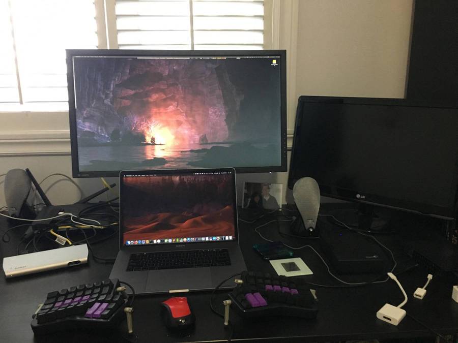 At home I have a Belkin Thunderbolt 3 dock which I use to dock my laptop to an ASUS 4K monitor, wireless mouse, USB hub, and of course, my Ergodox EZ.