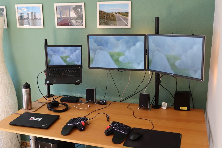 The keyboard is attached to a USB 3.2 docking station that I attach to both of my Lenovo ThinkPads. One is for work, the other one is my personal one. I've been using business laptops for personal use for over a decade now, they seem feature-complete compared to the consumer ones and aren't too expensive when bought refurbished.