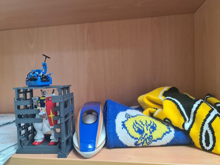 I have a pretty stock standard desk and chair, being a government employee, but I have a very nonstandard workstation. Most of the staff here operate on a VDI, but as my CAD needs are quite high, I run an IC3D Workstation with a Samsung 49" Ultrawide 4K monitor set up in dual-screen mode. Of course I have a few toys and souvenirs from my travels (some scarves from the UK and Finland, and a mini Gundam statue and Shinkansen bento box from Japan), and some photos (one of my partner and myself and some friends at another friend's wedding, and one of an ex-racing greyhound we fostered in 2021) to make it my own, as well as a bunch of reference info charts I use frequently.