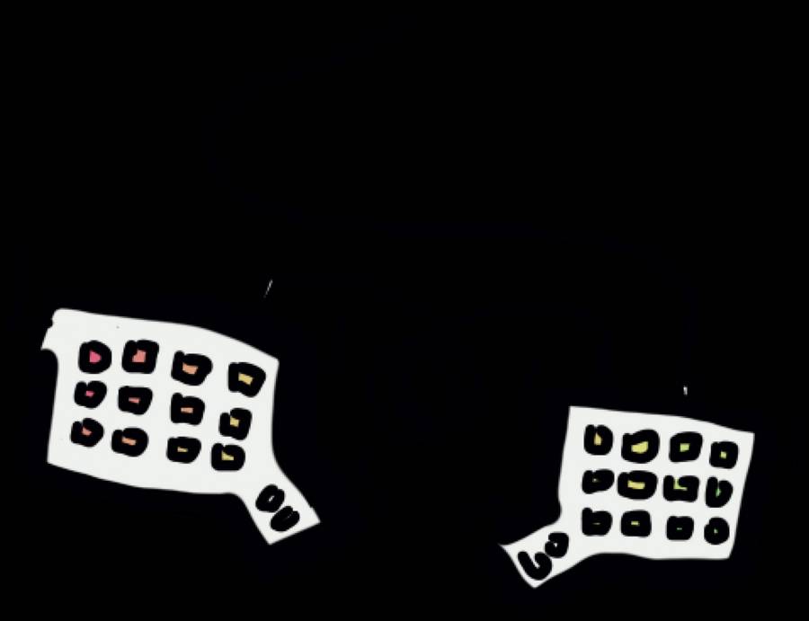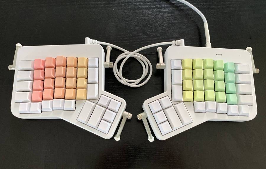 I have the white Shine version of the ErgoDox EZ -– but I only ever turn on the lights to impress. I have a mix of the official, blank, white caps on it and some rainbow colored blanks. I use a custom layout made to look more like a "normie" keyboard layout.