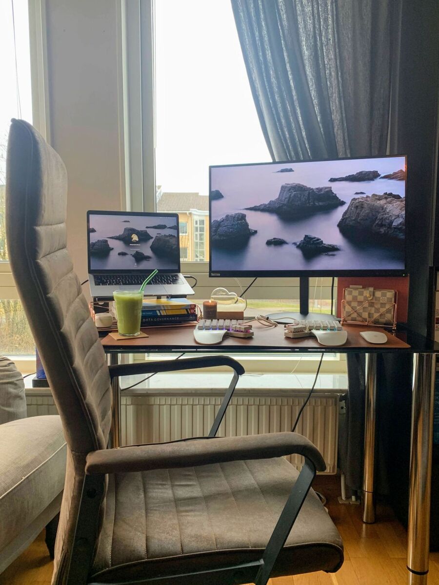 I wouldn’t change too much from what I have! I would love a stand-up desk, or at least one that I can easily move up and down so I can have lazy days and standing days!