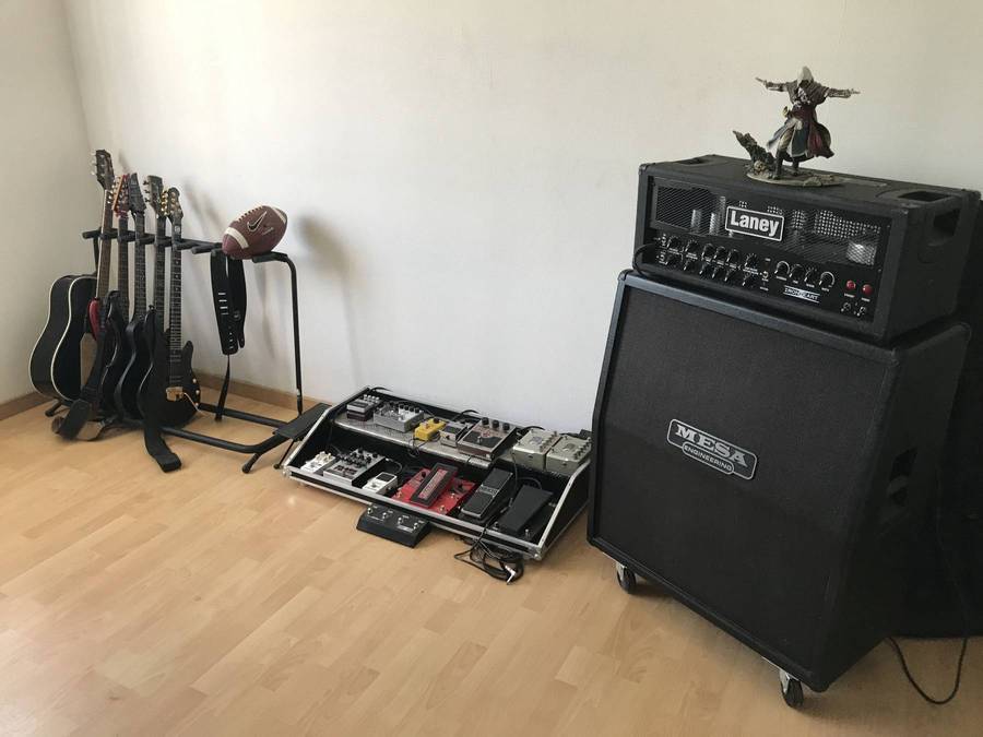 I use a 2017 13" MacBook Pro that is hooked up with a Henge tethered dock which allows me to plug in all my stuff, power my MacBook, and use my external monitor. I also plugged in an Apogee One audio interface / microphone, which I use for recording screencasts and conference calls and to record my guitar sessions through instrument input or by hooking up a Shure SM57 to the XLR input to capture my amp sound.