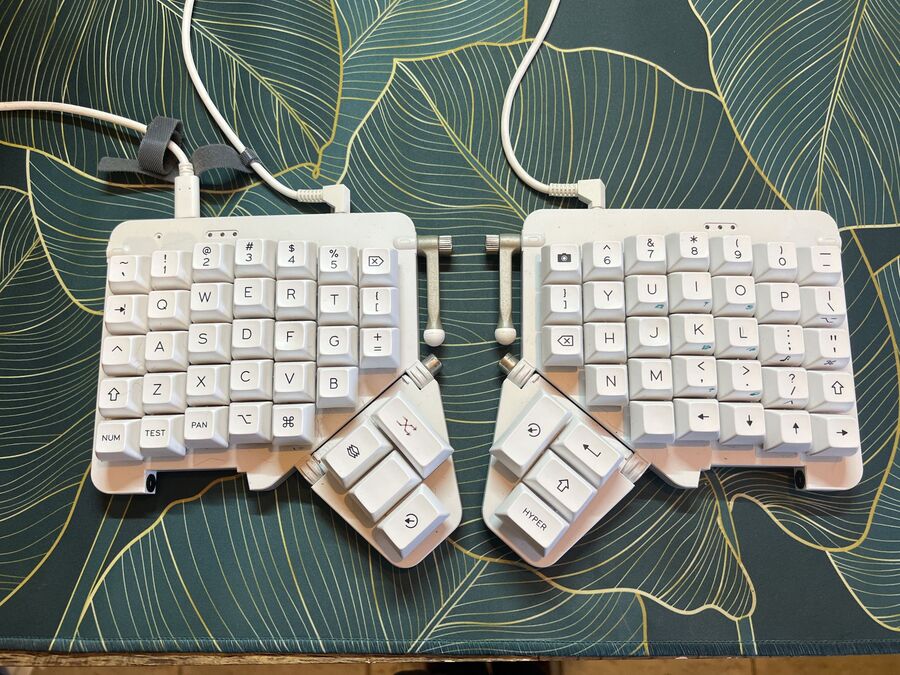 I used to cycle through keyboards about once per year or so, but that stopped once I received my Moonlander. The high humidity on Guam isn’t kind to electronics, so it’s useful to be able to open the keyboard easily and blow it out with compressed air every so often. I use Kailh Box Red switches because I prefer slightly quieter operation; these switches aren’t too noisy yet still offer a great typing experience.