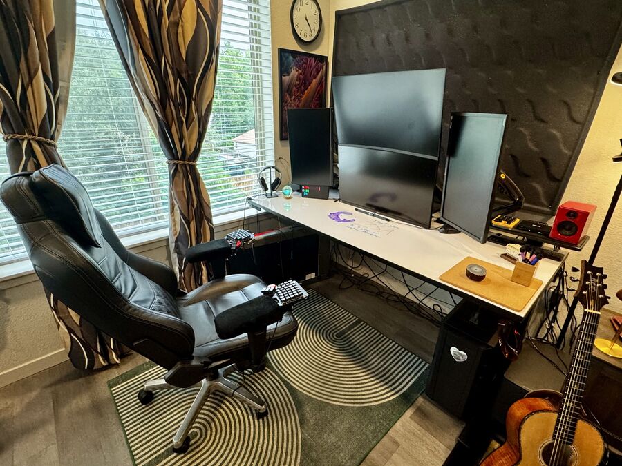 It might not be a surprise that I live a lot in my head with these geeky pursuits. However, to play the guitar or to type code requires heavy use of my hands. At times, I've struggled with tendinitis in my arms and anxious trips to the hand doctor to check for carpal tunnel. While my Moonlander setup plays a part in my solution for this by providing me with ideal ergonomics and shortcuts, a lot more goes into play to keep myself healthy in my pursuits. About a year ago, I started to heavily get into the practices of yoga and Alexander Technique in order to attempt to correct issues with my posture and muscular tension that are common among most people these days but were clearly causing me specific issues due to my hand-heavy obsessions.